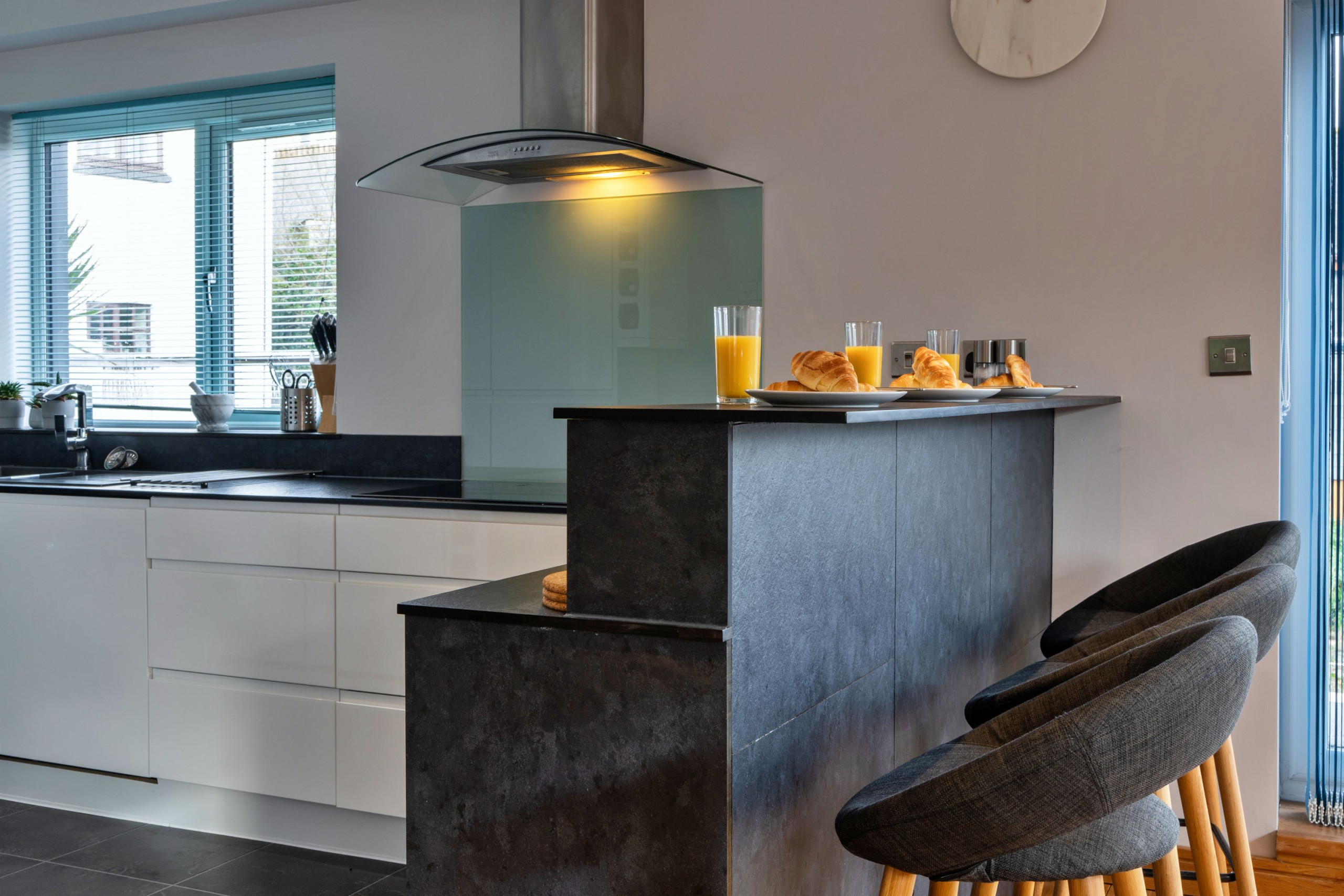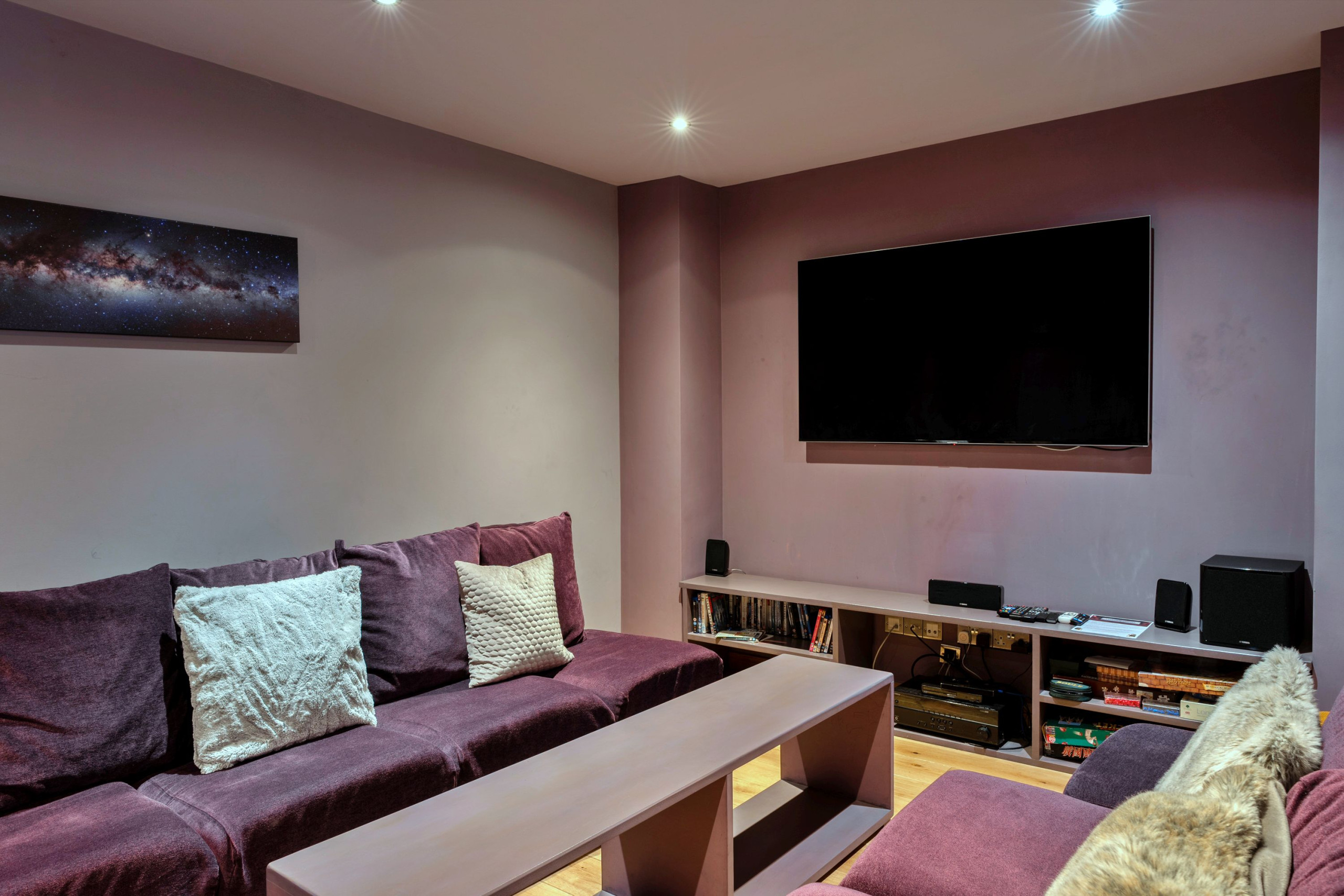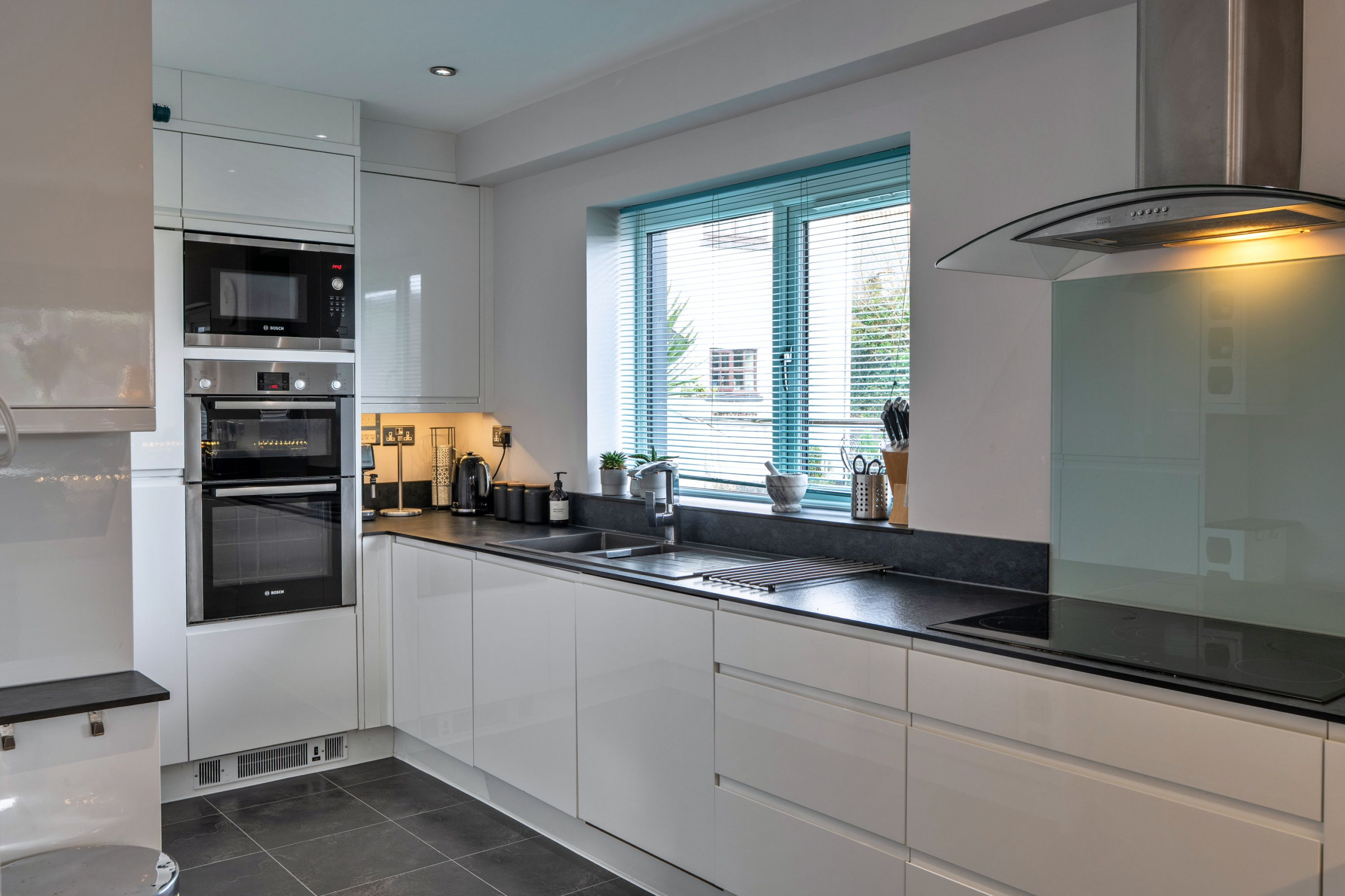 Downstairs the cinema room is perfect for a kids’ movie night or a grown-up film once the little ones are asleep. You’ll also find a handy utility room for beach gear, wetsuits and holiday laundry, plus a ground-floor WC.