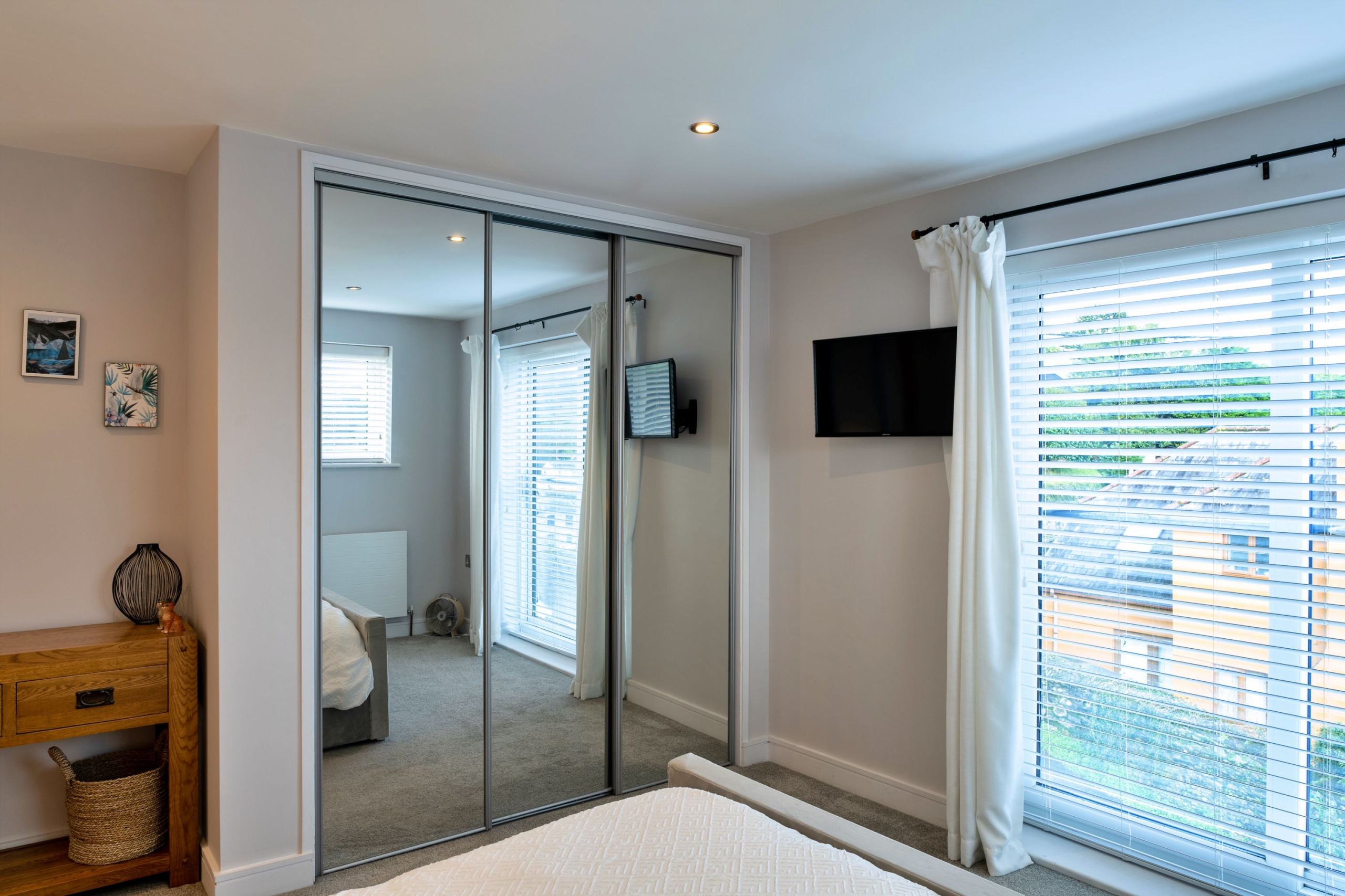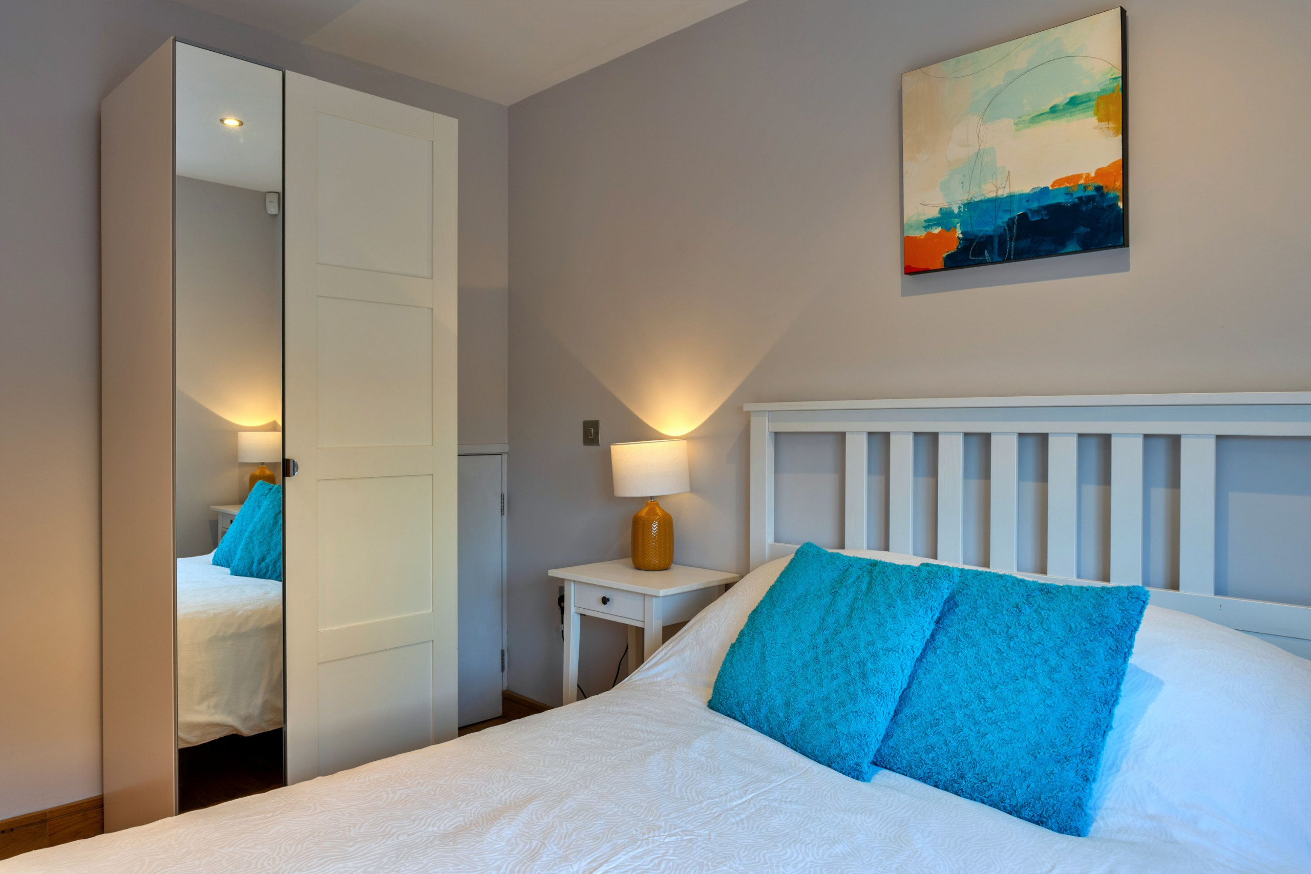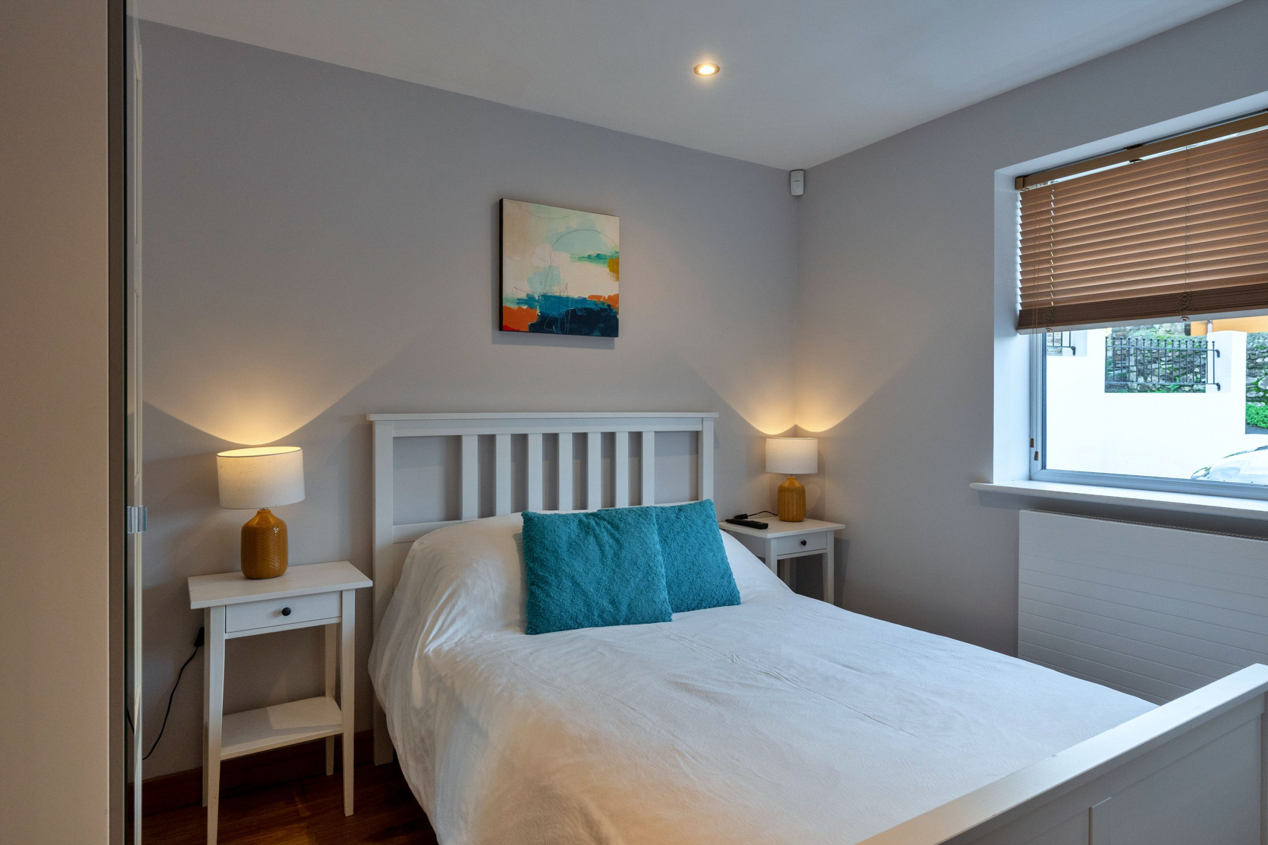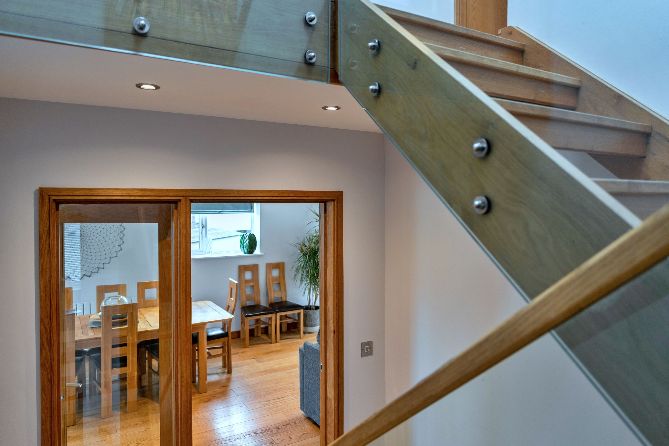 The sleeping layout works especially well for families travelling together. On the second floor there are three bedrooms: a king-size master with TV, en-suite shower room and Juliet balcony, a super-king that can be set up as twins on request, and a third twin room that can convert to a king-size if needed. A spacious family bathroom on this floor includes both a bath and a large walk-in shower. The fourth bedroom is a ground-floor double, making it ideal for grandparents or anyone who’d prefer fewer stairs.
